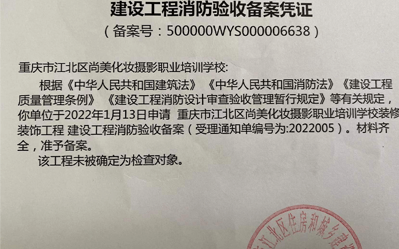 重慶市江北區(qū)尚美化妝攝影職業(yè)培訓(xùn)學(xué)校消防備案案例-鼎堂消防